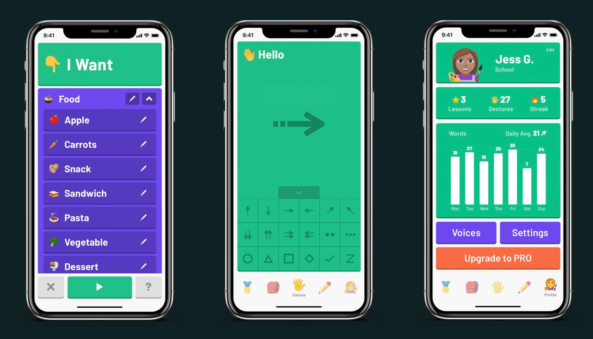 "As a speech pathologist I have used a lot of different augmentative speech devises with both children and adults. The design of this app is super intuitive and the people that I've tried it with have been excited about how quickly they could use it to express themselves. Frustration is down. Smiles are up. The swipe or gesture to talk feature is great for people who have a hard time seeing, finding or tapping specific buttons."